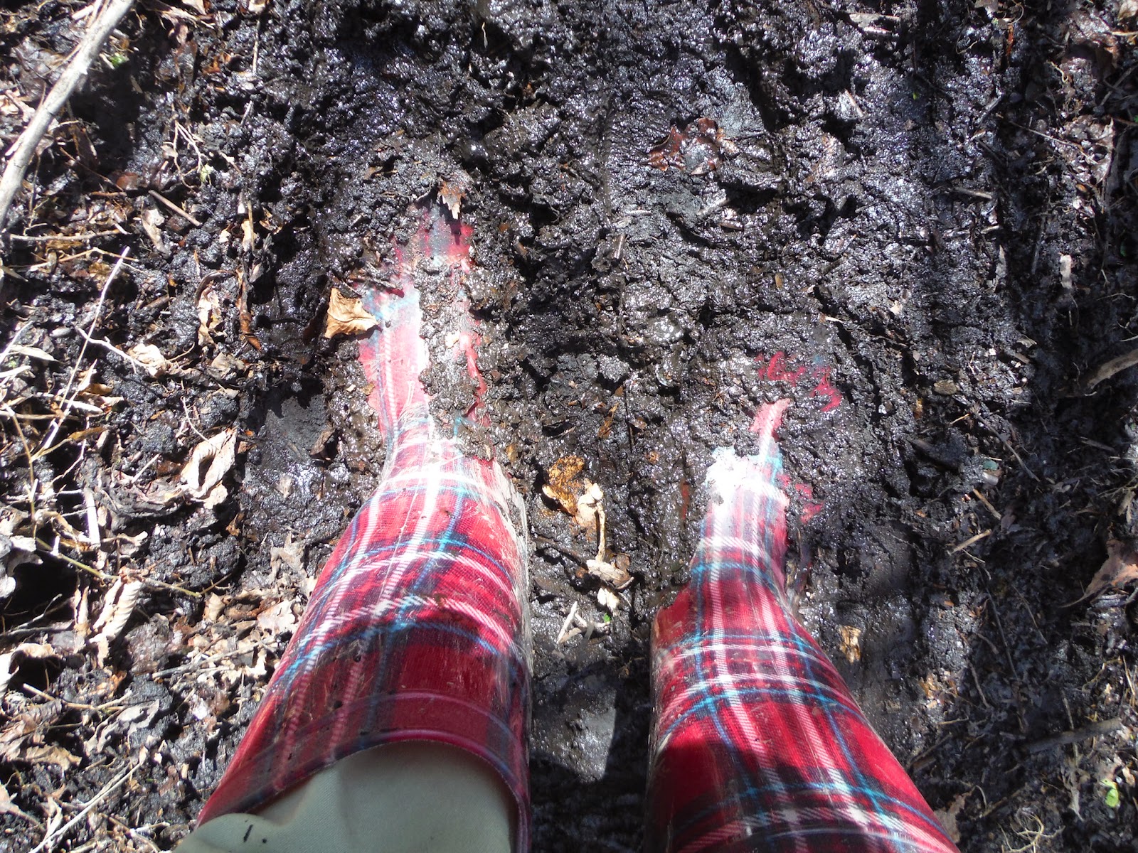 足元の灰は、固くしまっているところと、泥んこになっているところと、
